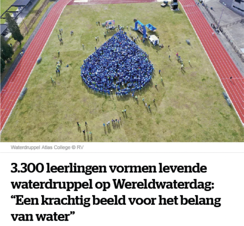 3.300 leerlingen vormen levende waterdruppel voor Wereldwaterdag